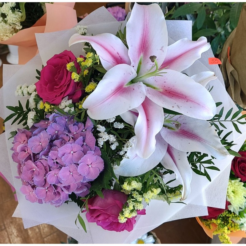 Този букет е създаден за моментите, в които искате да оставите някого без дъх. Съчетаваме величествения, благоуханен ориенталски лилиум с разкошната, обемна хортензия. Тази комбинация създава невероятна текстура и изтънчена визия, която рядко може да бъде подмината.